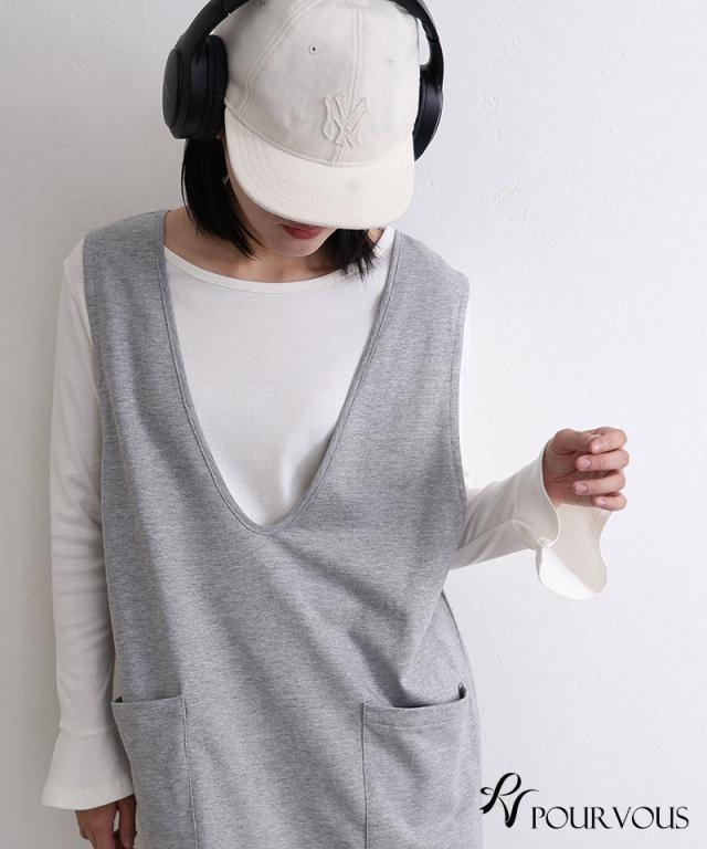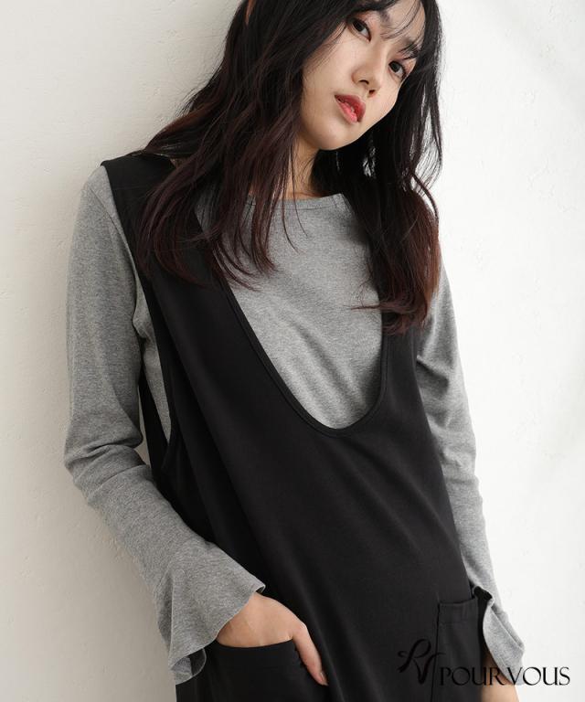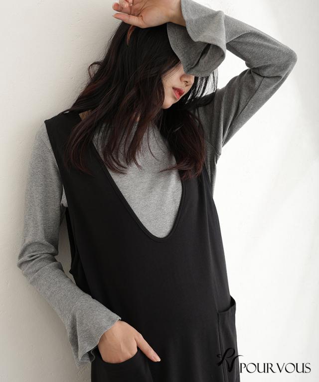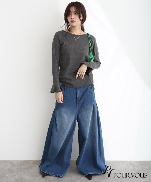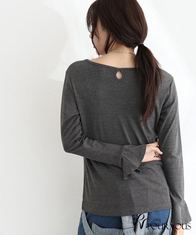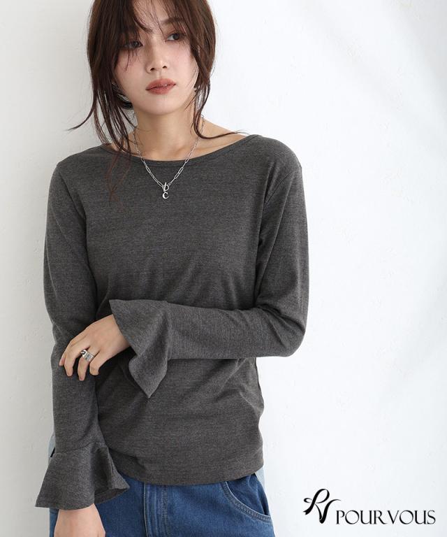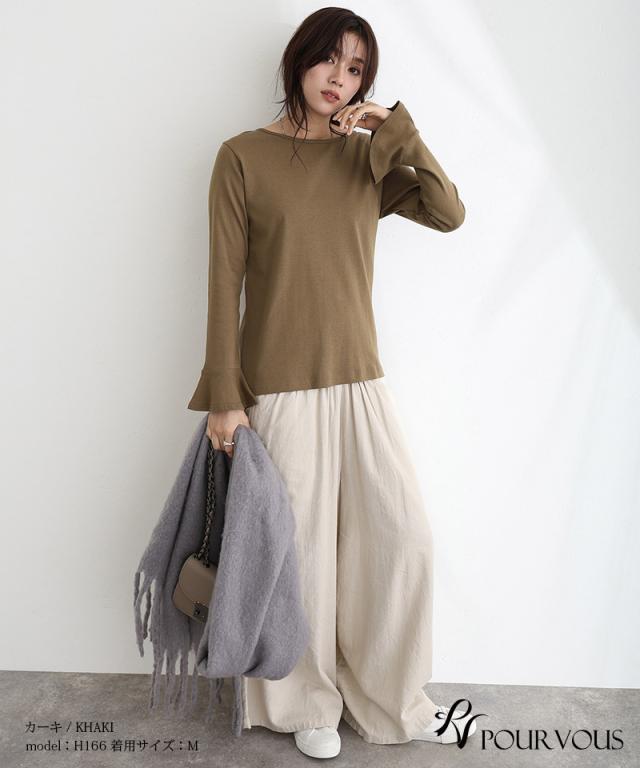 綿フライス袖口フレアトップス/242241826