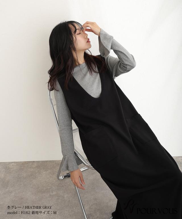 お仕事に デート 大人 長袖 七分袖 7分袖 お出かけ お出掛け着 着やせ 普段着に デイリー 綿フライス ナチュラル 韓国 Uネック 通勤 袖口フレア オールシーズン 着回し ロング 無地