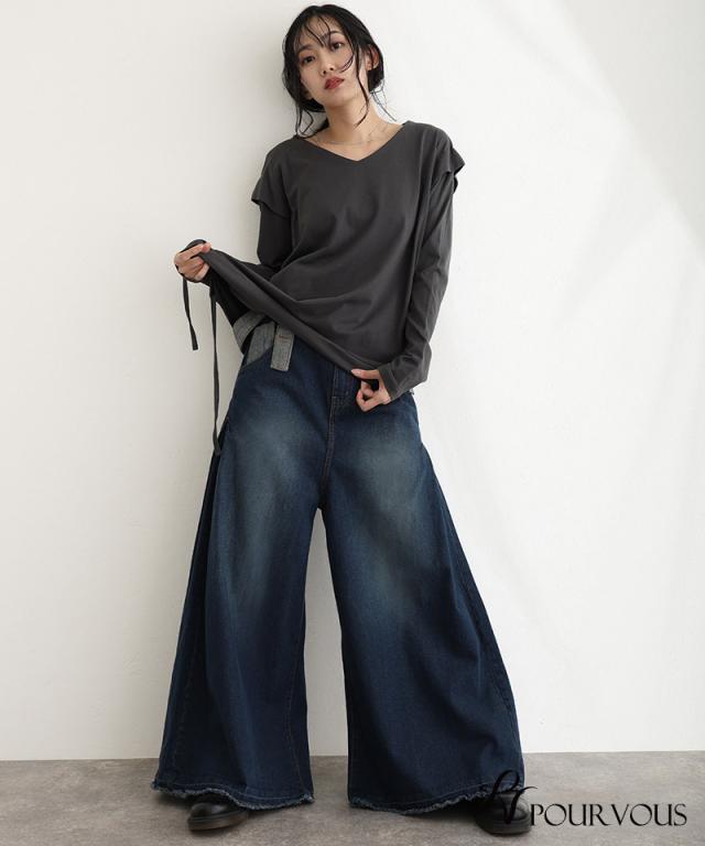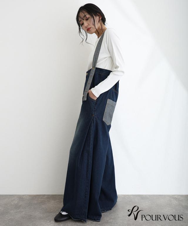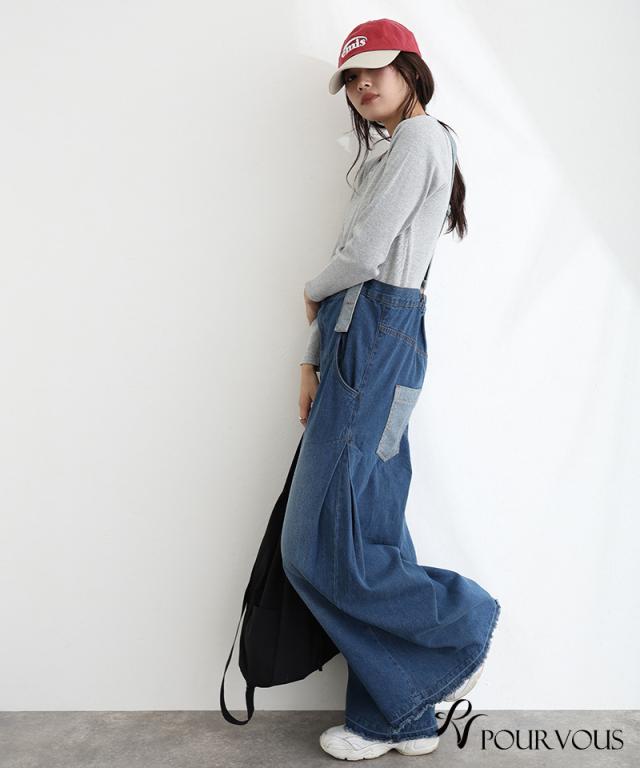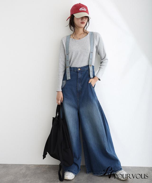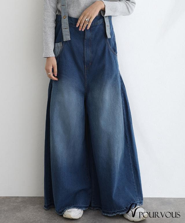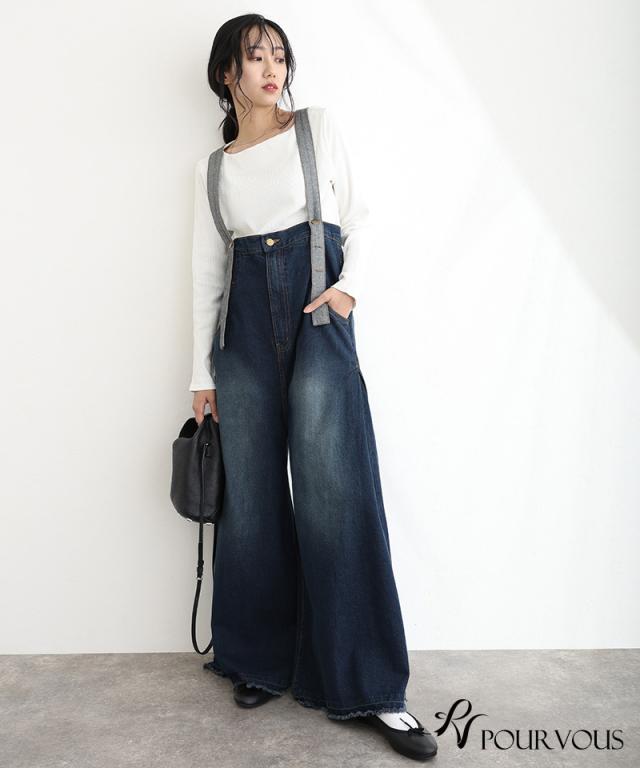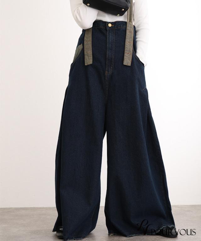 235241926 大人かわいい 大きいサイズ 大人可愛い パンツ レディース ボトムス おしゃれ 女の子 ハイウエスト サロペ ジーンズ ロングパンツ ワイドパンツ デニム ズボン ワイドパンツ 肩紐