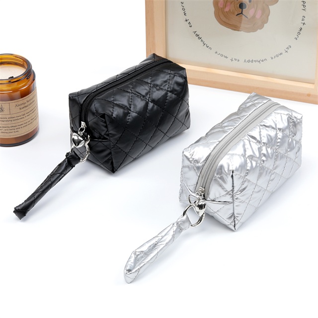 ストラップポーチ キルティング 化粧ポーチ イヤホンケース キーケース 銀色 幅約11cm×高さ7cm×マチ6cm
