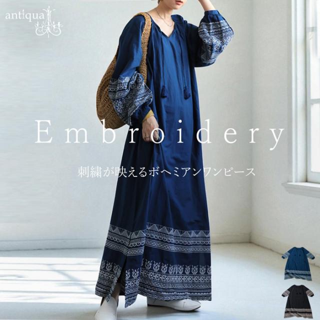 ボヘミアン(フォークロア・エスニック)テイストを取り入れつつ、antiquaらしいモード感も感じられる、唯一無二の一着です。