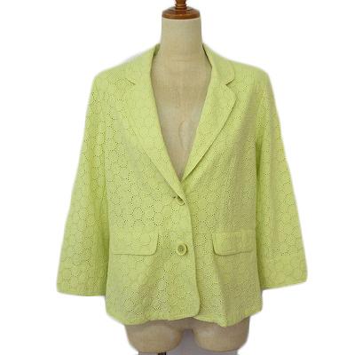 【中古】ノアージュ noa-ge ジャケット テーラード 刺繍 カットワーク コットン L 緑 グリーン レディース