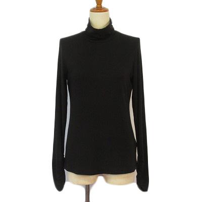【中古】PREUVE プルーヴ カットソー ハイネック シャーリング ギャザー カシミヤ混 40 黒 ブラック レディース