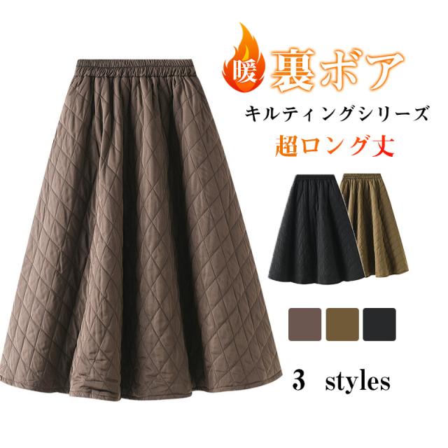 防寒性能抜群! 裏ボアキルティングスカート ロング丈