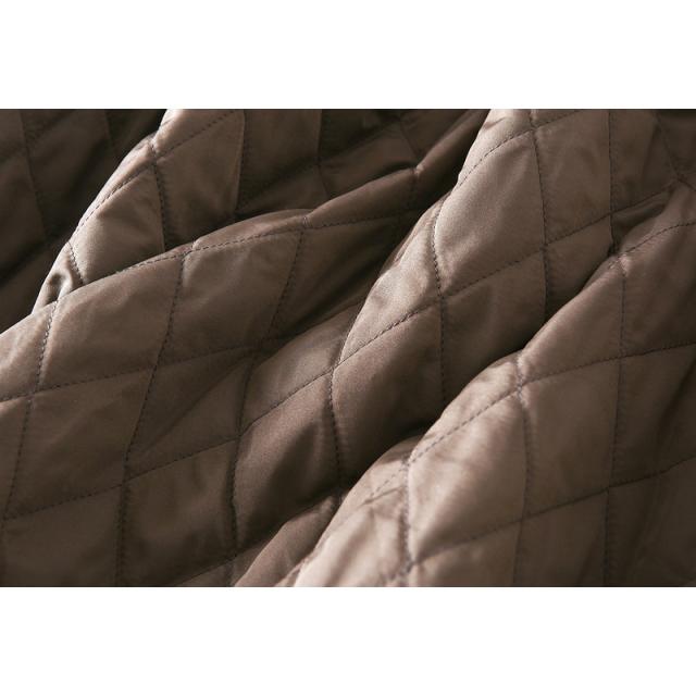 キルティング生地と保温効果のある裏ボアで暖かい。ボアは毛布のようなやわらかい肌ざわりです。