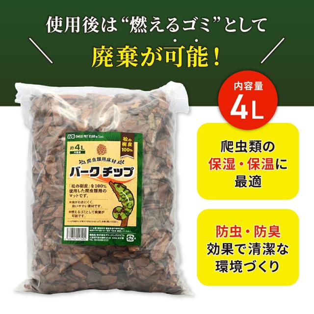バークチップ 4L 爬虫類 床材 マット 松樹皮 レオパ ウッドチップ リクガメ 床材 フトアゴ トカゲ カナヘビ