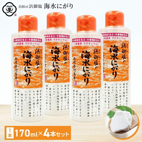 浜御塩 海水にがり 170ml 4個セット にがり 天然 無添加 マグネシウム 食品 カルシウム 長崎県対馬産 にがり水 白松