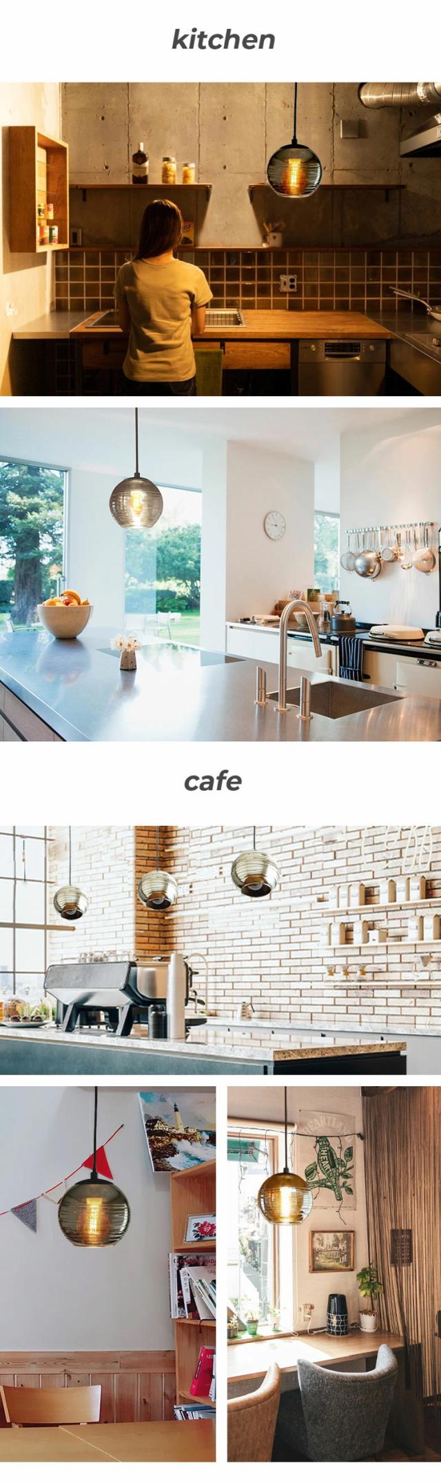 サイズは少し小さめですが、リビングルームやダイニングルームだけでなく、カフェやホテルなど、お部屋のサイズに合わせて、いくつも吊り下げるのもヨーロッパの嗜み。