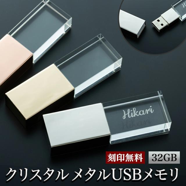 名入れ USBメモリ 32GB 名前入り USB 刻印 箱付き 金属 プレゼント ギフト 御礼 御祝 記念品 卒業式 入学式 卒業記念 創立記念 送別品 就職祝い 退職祝い 進級祝い 進学祝い おしゃれ 大量注文 クリスタル オシャレ 入学 卒業 卒業記念品 新社会人 社会人 大学生