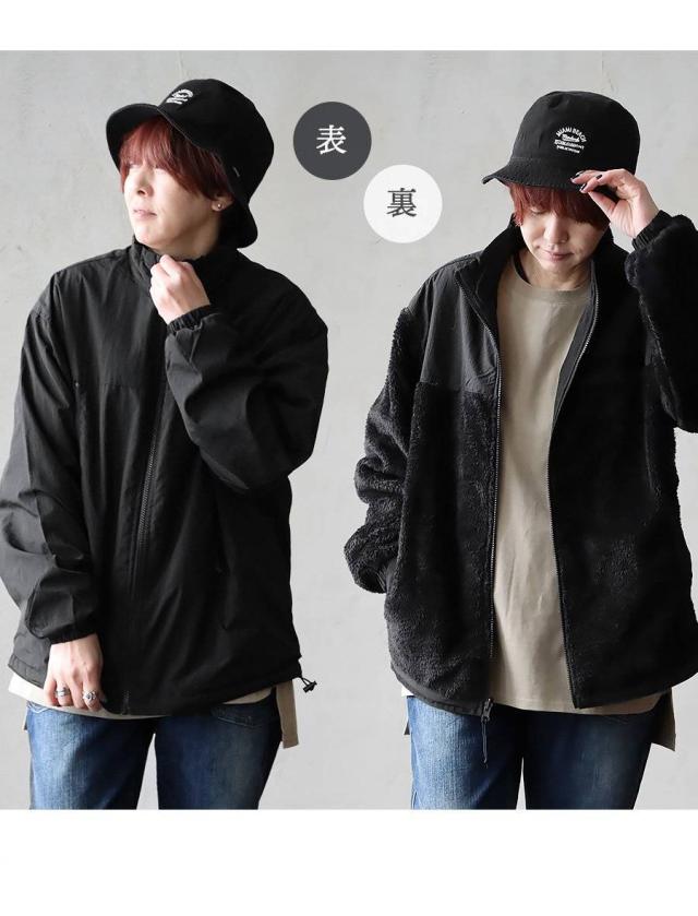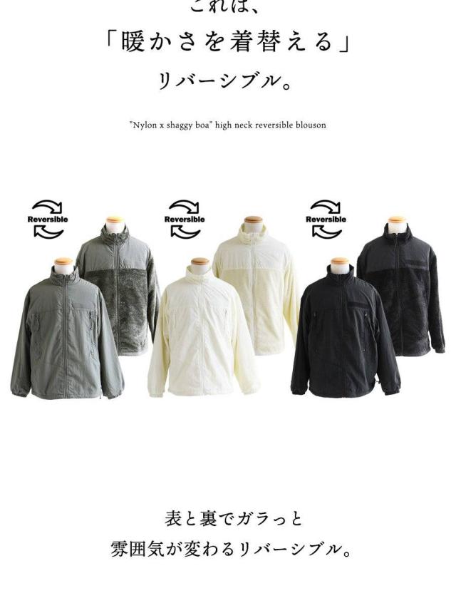 ブルゾン 長袖 メンズ レディース ハイネック リバーシブル ナイロン シャギーボア しっかり生地 丈夫 暖かい 保温性 ゆったり 大きいサイズ カジュアル 秋 冬 パティ