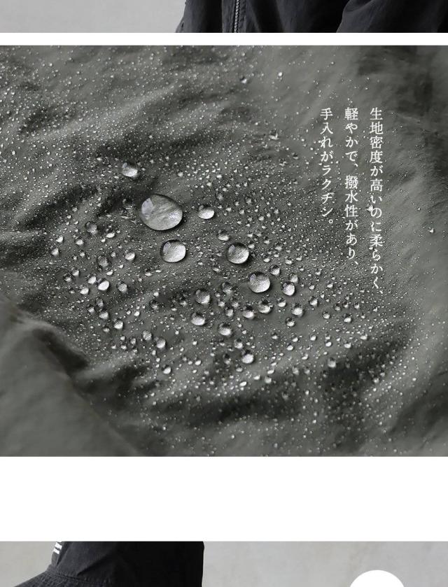 ・表は自然なシワ感のあるナイロンワッシャー生地。生地密度が高いのに柔らかく、軽やかで、撥水性があり、手入れがラクチン。