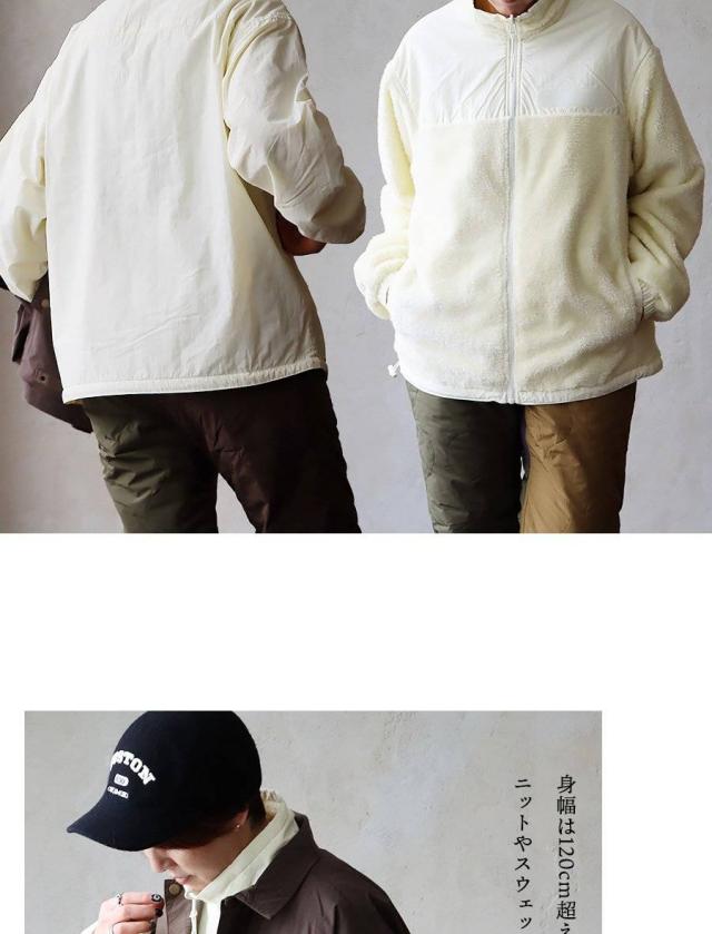 ・身幅は120cm超えのワイドシルエット。ニットやスウェットに羽織ってもゴワつきにくいのが◎