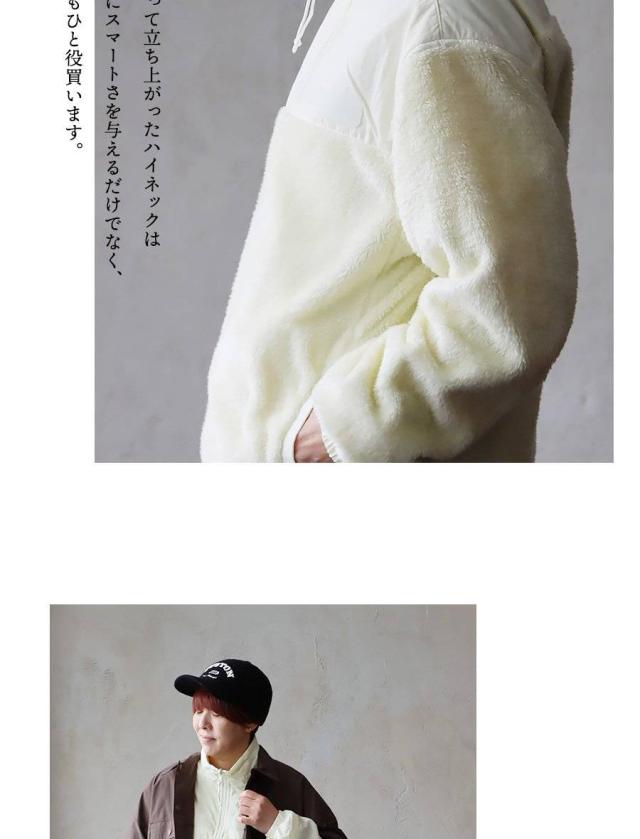 ・裏の肩周り以外は、毛足が長くソフトで暖かいシャギーボアで切り替え、少し珍しいデザイン。