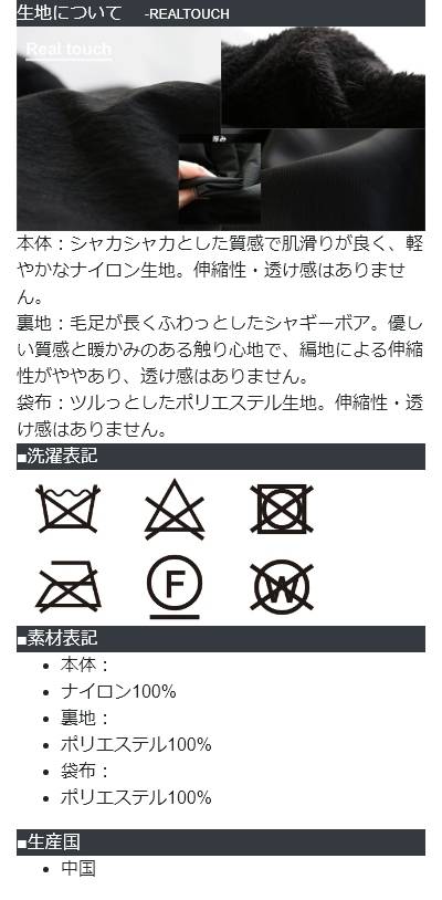 [素材]本体:ナイロン100% 裏地:ポリエステル100% 袋布:ポリエステル100%