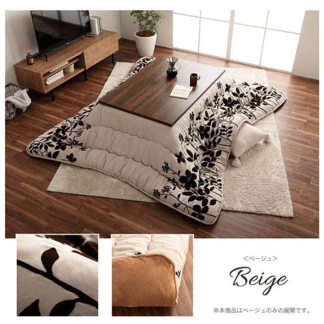 こたつ布団 正方形 モダンリーフ柄 約205×285cm ベージュ ihk-1150880020303 店舗 カフェ ラウンジ ロビー ホテル 法人 こたつ用掛け布団 こたつ用布団 カバー 送料無料 北欧 モダン 家具 インテリア ナチュラル テイスト 新生活 オススメ おしゃれ 後払い
