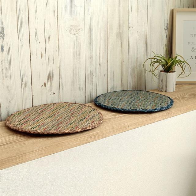 クッション チェアパッド い草 チェック柄 調湿 空気清浄 お手入れ簡単 約35丸cm ベージュ ブルー ihk-1142260022402 店舗 カフェ ラウンジ ロビー ホテル 法人 クッション クッション 座布団 送料無料 北欧 モダン 家具 インテリア ナチュラル テイスト 新生活 オススメ
