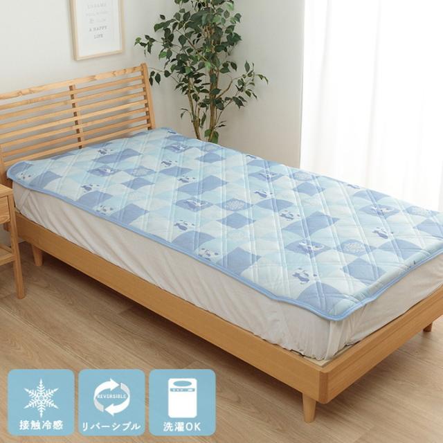 冷感寝具 冷感 可愛い 猫柄 おすすめ ひんやり 肌触り 節電 夏用 涼しい ダブル 約140×200cm ブルー ihk-1195100370301 店舗 カフェ ラウンジ ロビー ホテル 法人 ベッドパッド 敷きパッド 寝具 送料無料 北欧 モダン 家具 インテリア ナチュラル テイスト 新生活 オスス