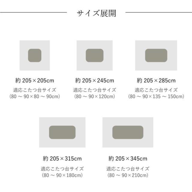 | サイズ | 縦:205×横:205cm掛布団/205×横:205cm敷布団/190×横:190cm厚み:約80mm |