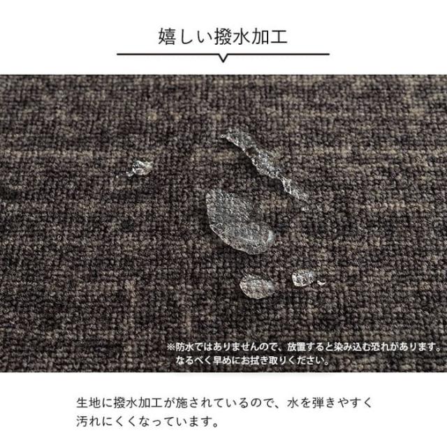 シンプルなデザインのカーペット。お子様用のデスクカーペットはもちろん、大人用の書斎やテレワークデスクにもおすすめです。表地に撥水加工を施しているので、水分をこぼしてもサッと拭けてお手入れ簡単。裏面は不織布だから学習机や椅子の移動も安心。床の傷防止に必要なアイテムです。表面はループタイプで毛足が短いので、ゴミもたまりにくくお手入れも簡単。またポリプロピレン糸を使用しているから摩擦に強く、毛玉が出にくいのも特徴です。厚みは5mmと薄いため、椅子の移動やお子様が歩く際もつまずきにくく安心してお使いいただけます。ルームマットとしてキッズルームやベッドサイドに敷いたり、大きいサイズは2人用のダイニングカーペットとしてもお使いいただけます。丸巻きでお届けするため、折りシワの心配もなくキレイに敷くことができます。洗濯表示:30℃以下の水温で弱い手洗いで洗濯してください。(
