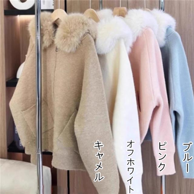 フード付き ニットパーカー レディース ファーフード シップアップ パーカー ニット 秋冬 アウター 長袖 羽織 カジュアル