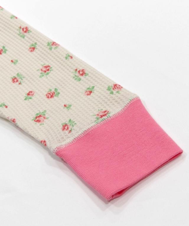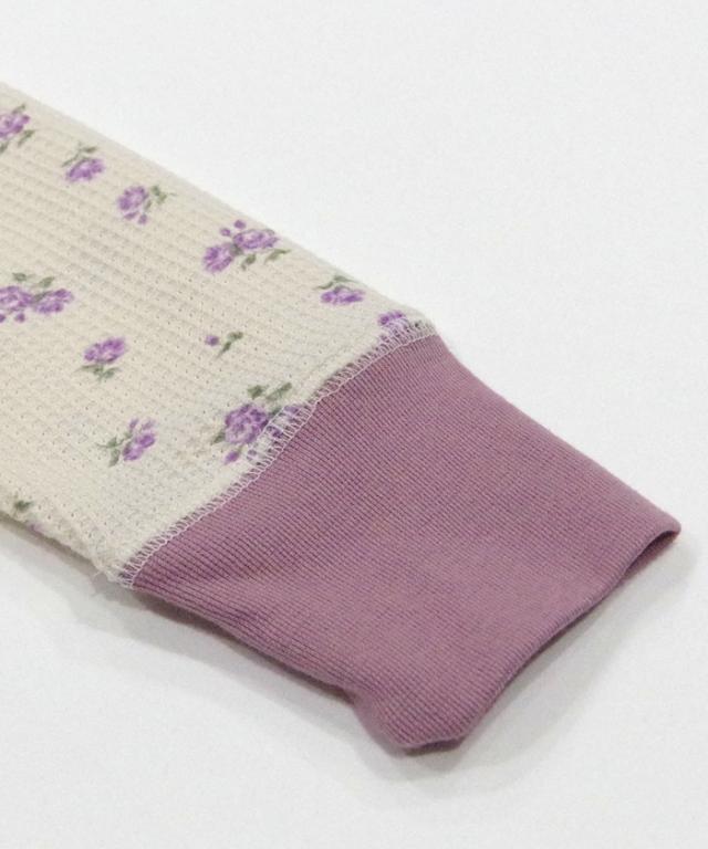 | 商品説明 | ・人気の花柄プリントシリーズに、新作が加わりました。 ・適度な保温性と凹凸のあるワッフル素材を採用し、柔軟性・伸縮性・吸水性・吸湿性に優れた仕上がりです。 ・カラーはベースがナチュラル共通で、ピンク、ブルー、ラベンダーの小花柄と、ブルー系ストライプの小花柄です。 ・襟元と袖口の配色がコーディネートのポイントになります。 ・パッケージ入りなのでプレゼントとしてもおすすめです。 |