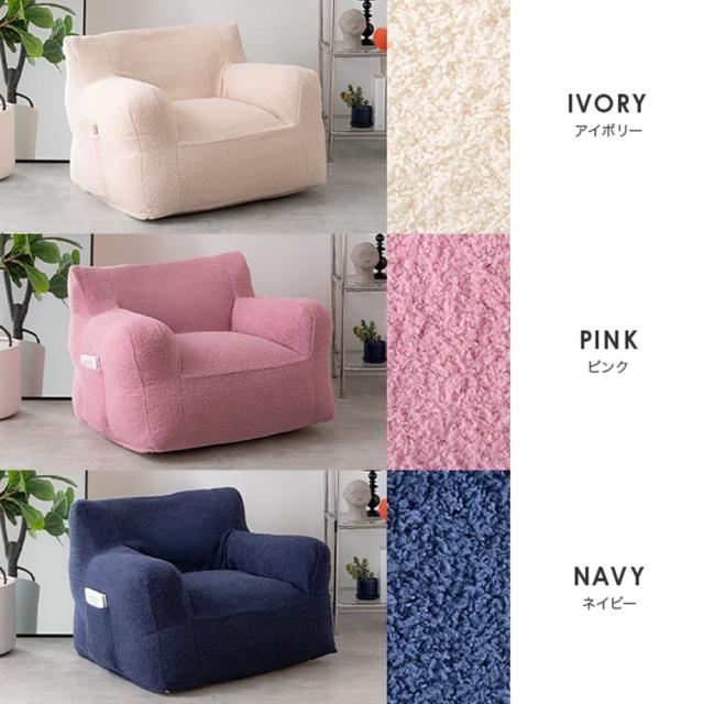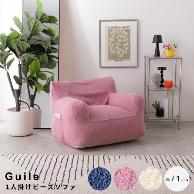 あらゆるシーンに対応するアイボリー、ピンク、ネイビーの1人掛けビーズソファGuile(ガイル)。