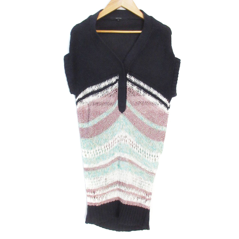 【中古】マカフィー トゥモローランド ニットワンピース ひざ丈 半袖 Vネック マルチボーダー 1 S 紺 白 レディース