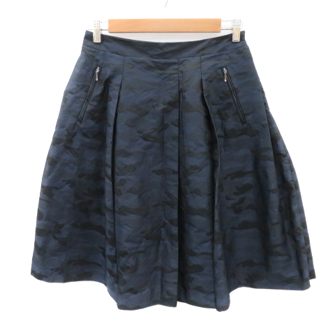 【中古】インディヴィ フレアスカート ギャザースカート ミモレ丈 迷彩柄 カモフラ柄 40 L ネイビー レディース