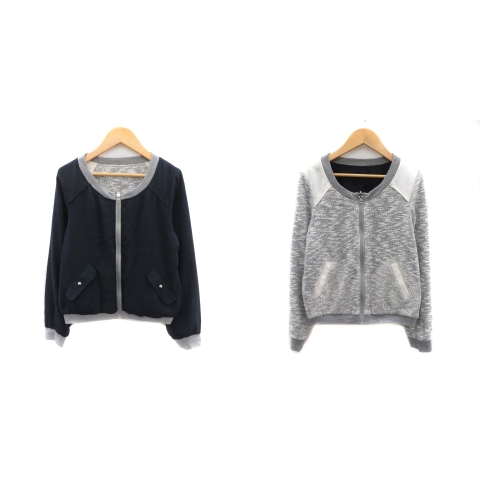 【中古】ルゥデルゥ Rew de Rew ブルゾンジャケット ミドル丈 リバーシブル 38 M 紺 ネイビー /YK18 レディース