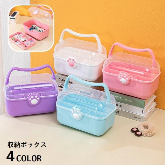 収納ボックス 収納ケース 蓋付き 持ち手付き 取っ手 仕切りトレイ付き 2段 大容量 肉球 小物入れ 文房具入れ メイク道具 救