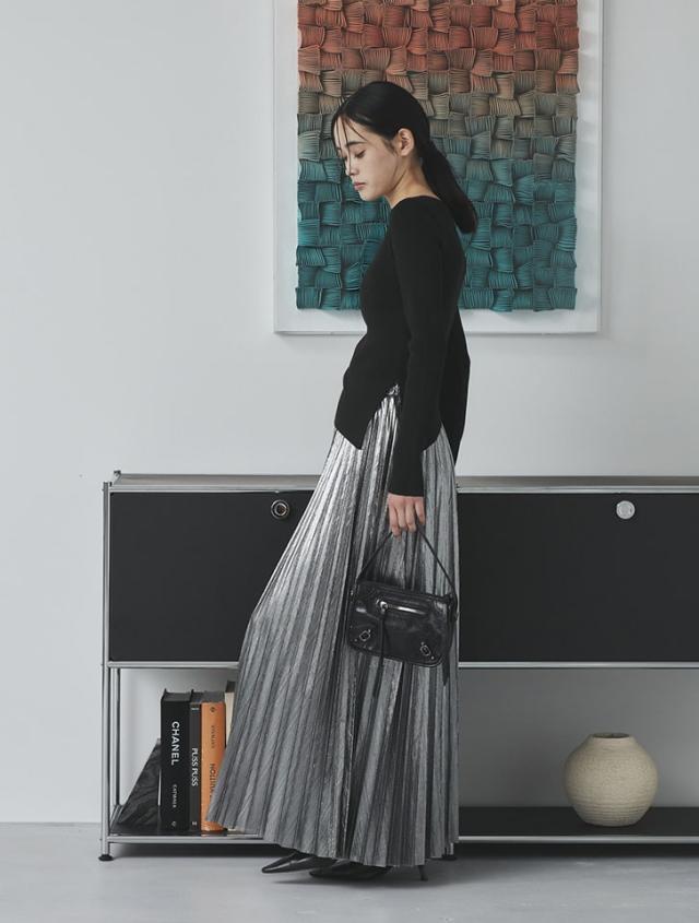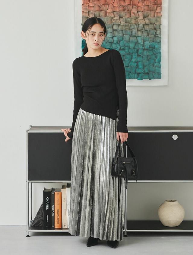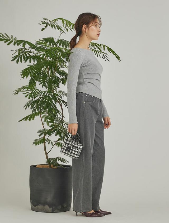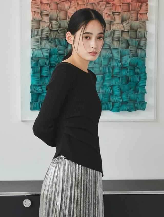 サイドのタックが立体感を演出するリブニット