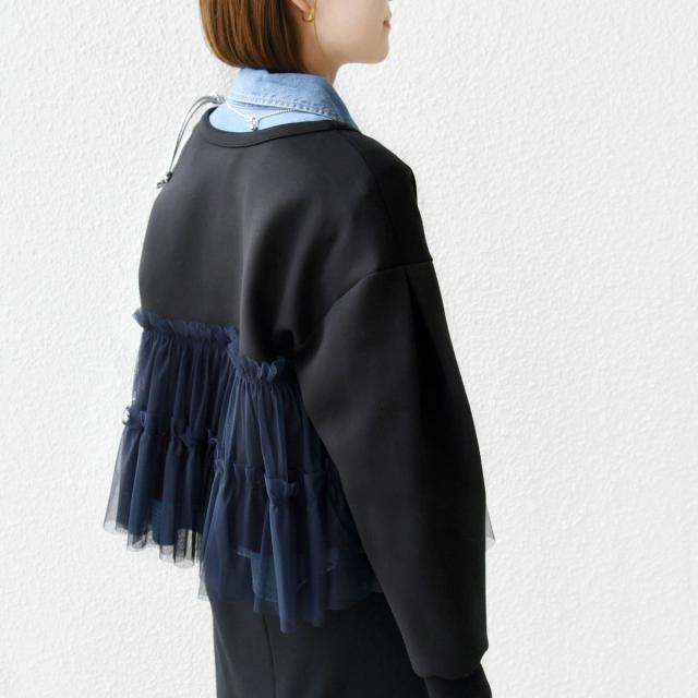 チュールのギャザーを贅沢に施し、シンプルなボトムと着るだけでサマになるコーディネート要らずのアイテムです。