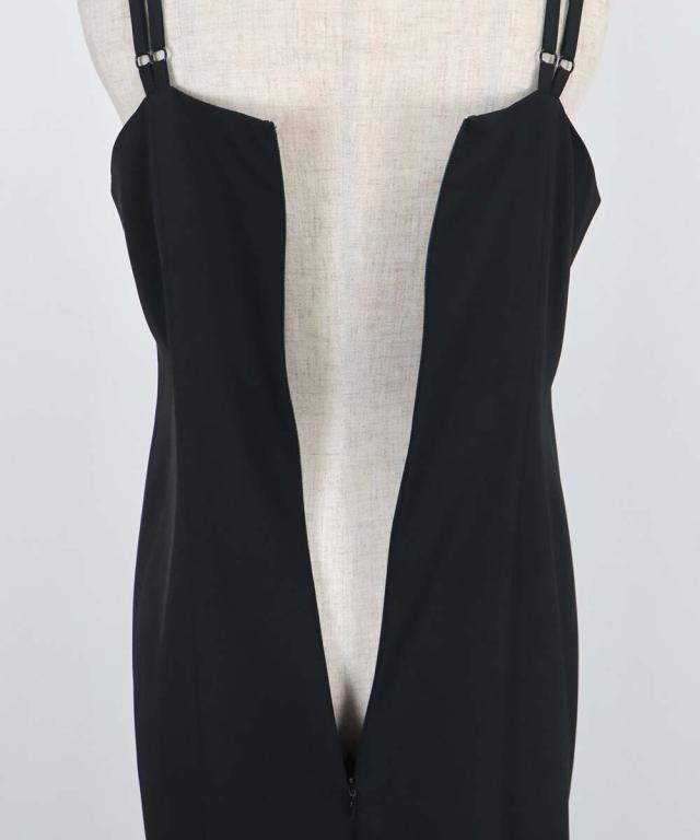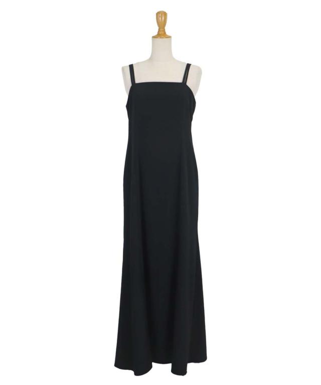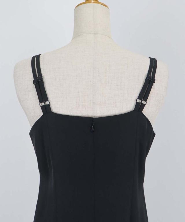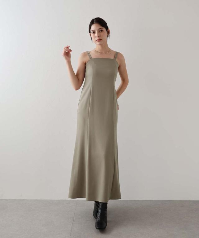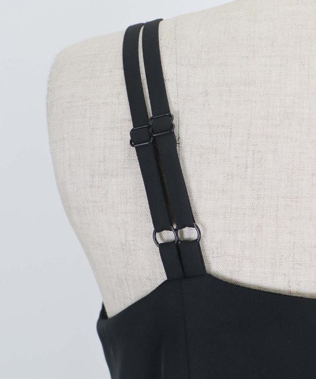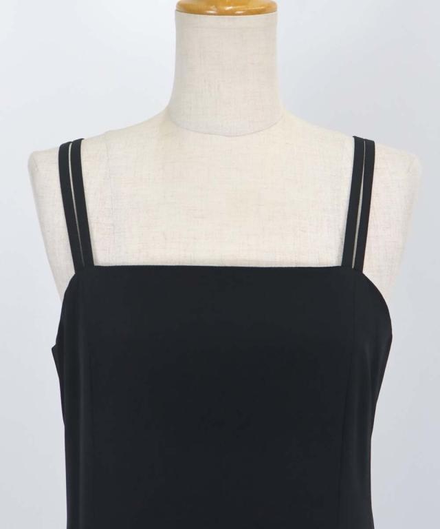 キャミワンピースはミニマルなデザインながらも、ダブルストラップの肩紐で一癖ある個性的な印象。