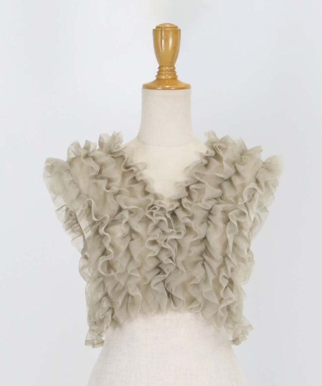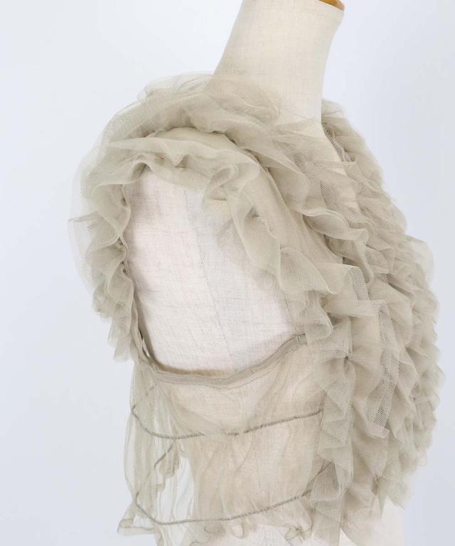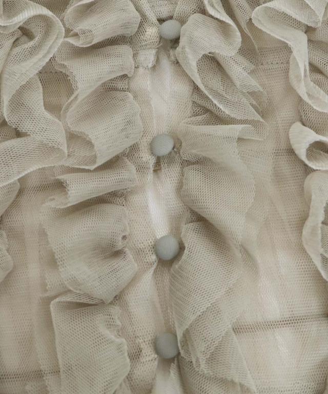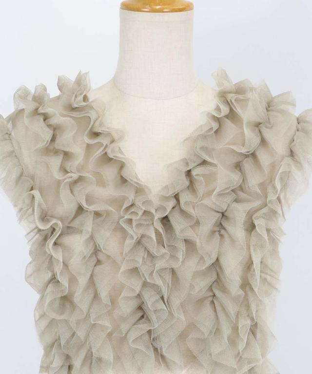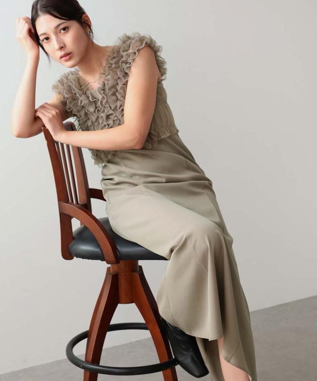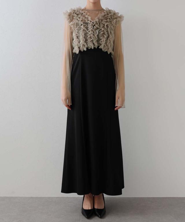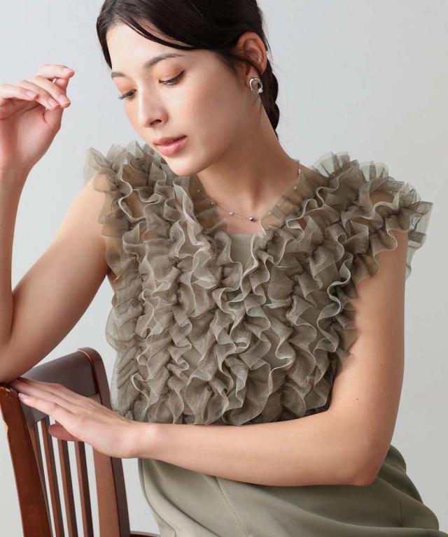 繊細なチュールと立体感のあるフリルデザインが高級感があり、シックな印象に仕上げた一枚。
