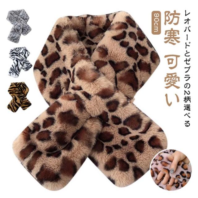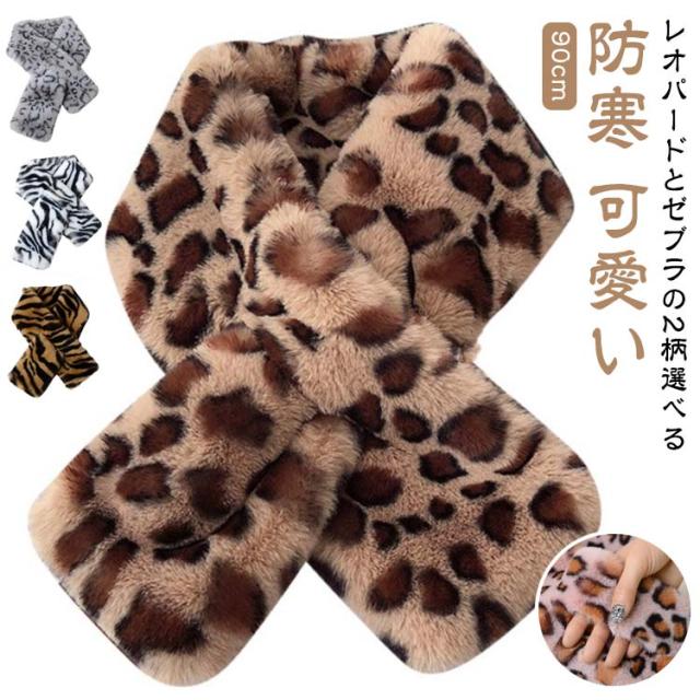 ゼブラ柄 フェイクファー ファー マフラー レディース ティペット ふわふわ スヌード エコファー 防寒 マフラー オケージョン レオパード柄 ティペット 可愛い きれいめ 通勤 通学 ミニマフラー クリスマス プレゼント