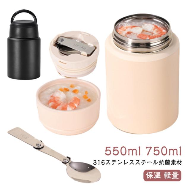750ml ランチ ステンレススープジャー 持ち運び 550ml スプーン付き 折りたたみスプーン付き お弁当 おしゃれ 保温 お手入れ簡単 スープジャー ステンレス 保温 軽量 コンパクト かわいい スープジャー 本体丸洗い スープ