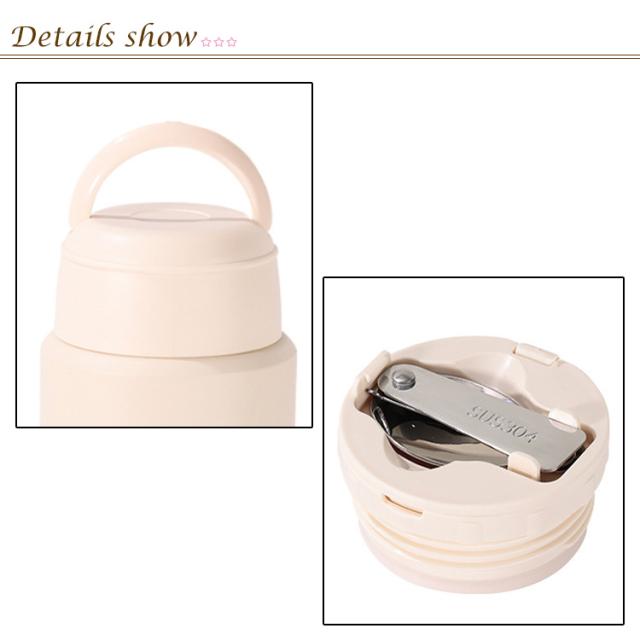 | 316ステンレススチール抗菌素材 1. 保温:おかゆ、スープなど 2. 冷たく保ちます: フルーツ、ミルクセーキ、冷たい飲み物など。 シリコン製の手持ちデザインで持ち運びが簡単 316 ステンレス鋼素材は、さまざまな食品材料と接触しても安全に使用できます。 折りたたみ可能なステンレス製スプーン付きで、便利で安心です。 | |