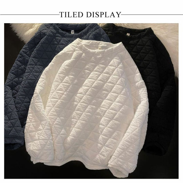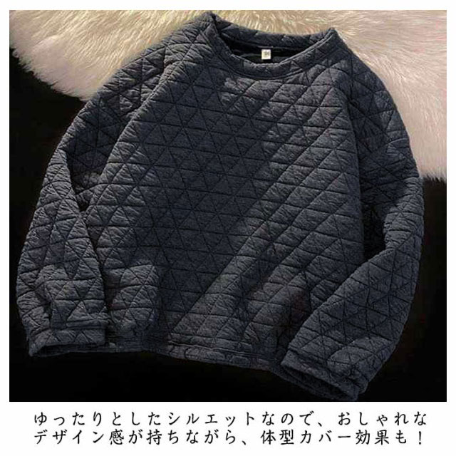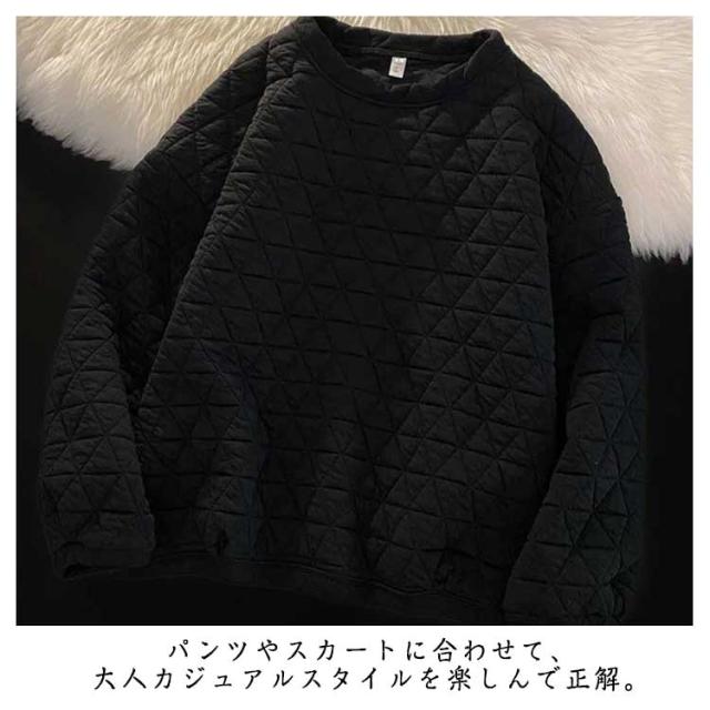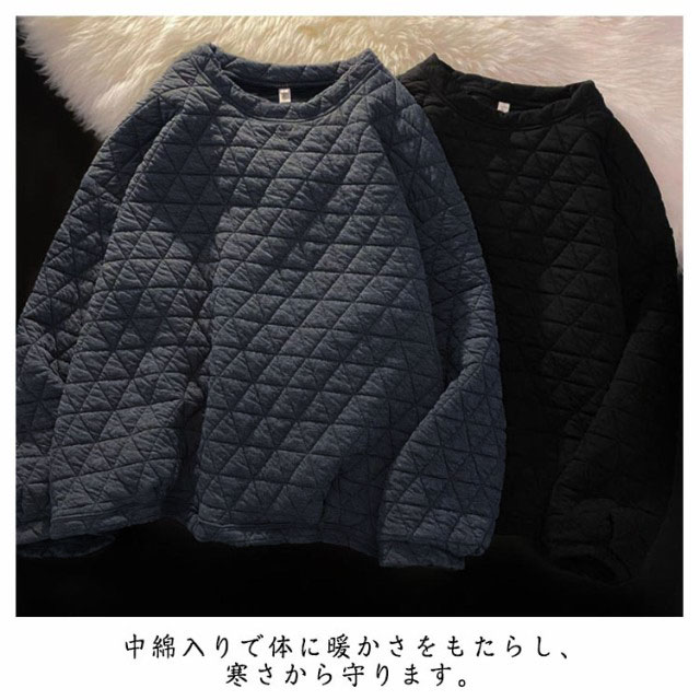 パーカー プルオーバー キルティング レディース トップス カットソー トレーナー 中綿入り 長袖 丸首 クルーネック シンプル 大きいサイズ ゆったり 秋冬 防寒 保温 カジュアル お洒落 体型カバー 通学 通勤 送料無料