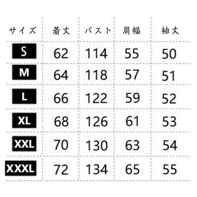 | サイズについての説明 | サイズ 着丈 バスト 肩幅 袖丈 ※サイズ表の実寸法は商品によって1-3cm程度の誤差がある場合がございます。 |
