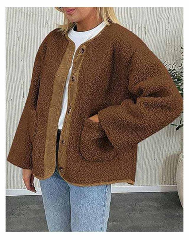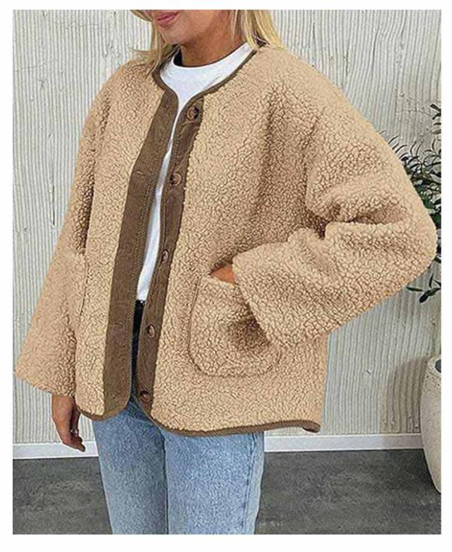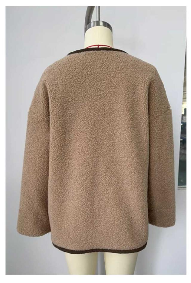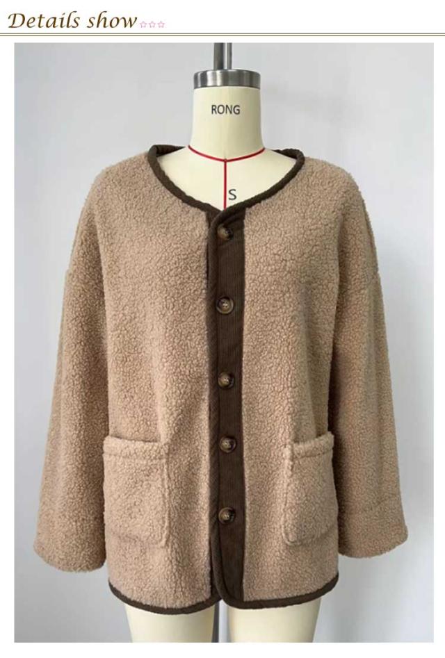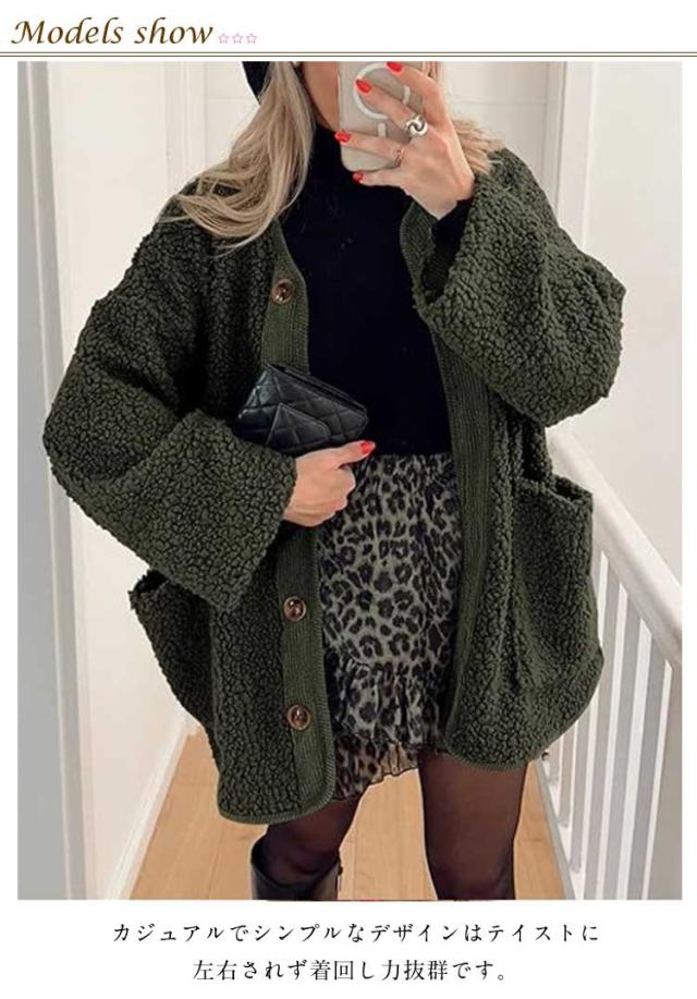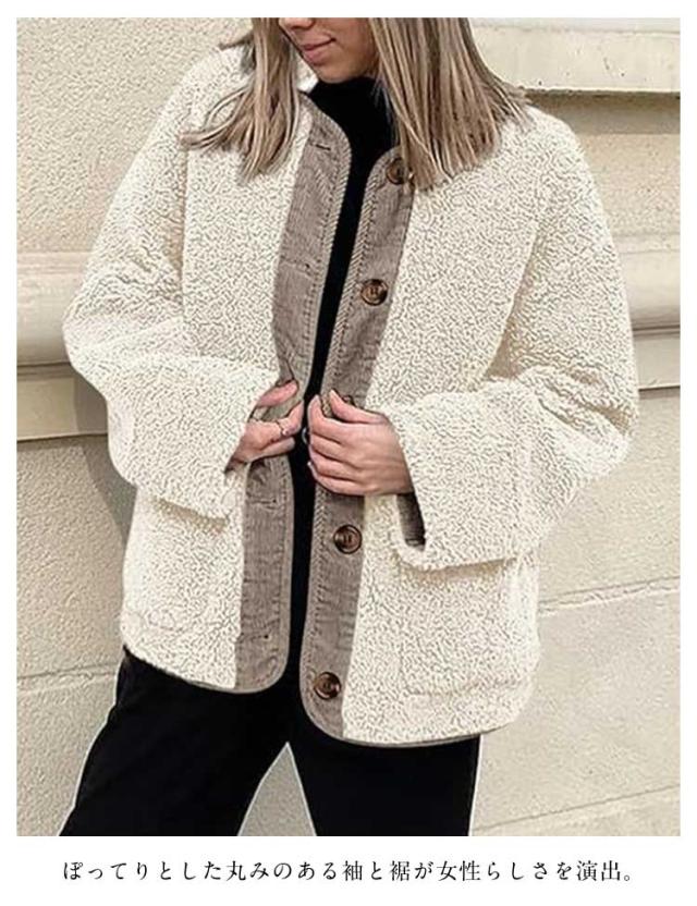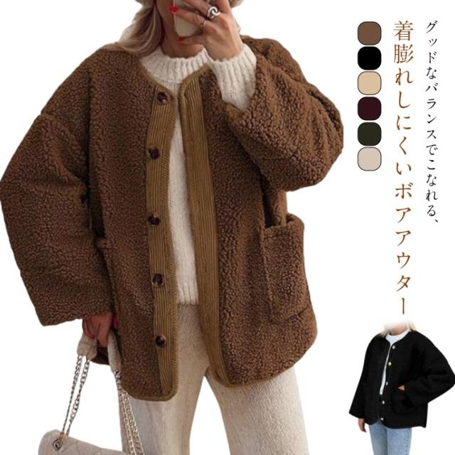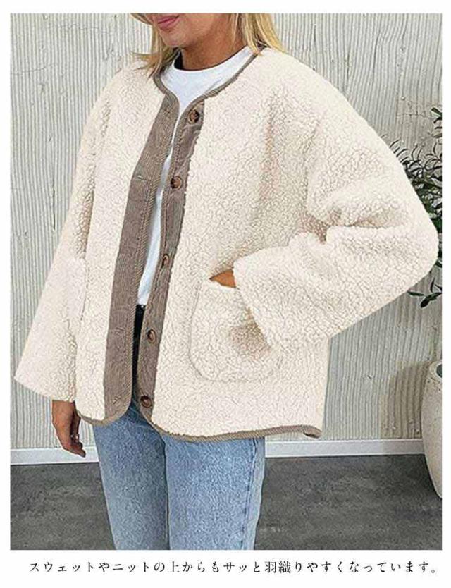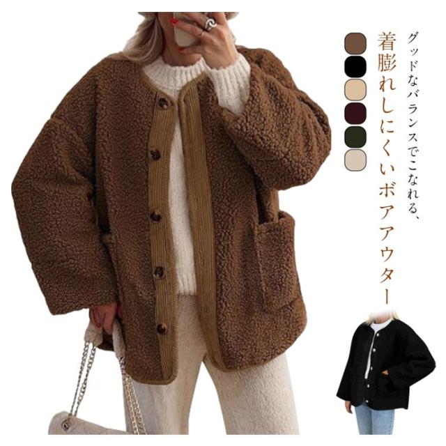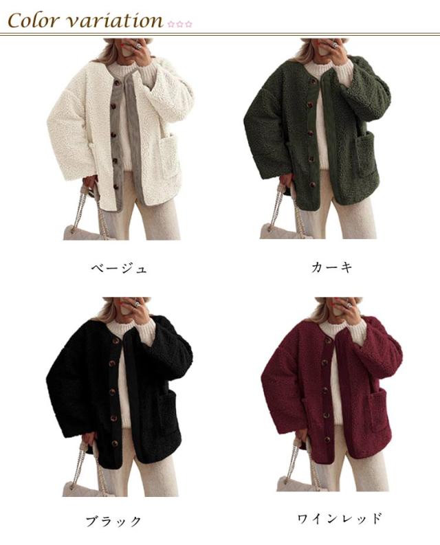 ノーカラージャケット レディース ボアコート カジュアル 羽織り ジャケット もこもこ アウター 長袖 ミドル丈 無地 上着 コート コート 大きいサイズ 秋 冬ボアアウター コート ポケット付き 可愛い シンプル トップス