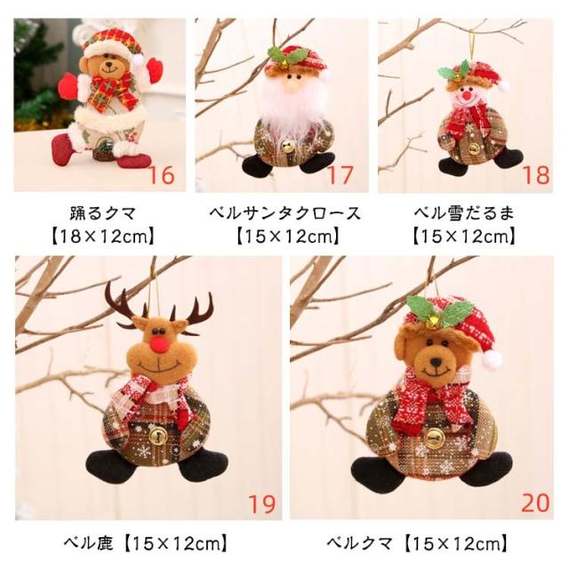 | 全20タイプ選べるクリスマスオーナメント ぬいぐるみ クリスマス飾り 【雰囲気作り】クリスマスの小道具として、クリスマスの雰囲気を大いに盛り上げる!お子様も大喜び! 【適応場所】自宅、お店、ホテル、オフィス、デパート、パーティー、学校、幼稚園、などに飾る最適! | |