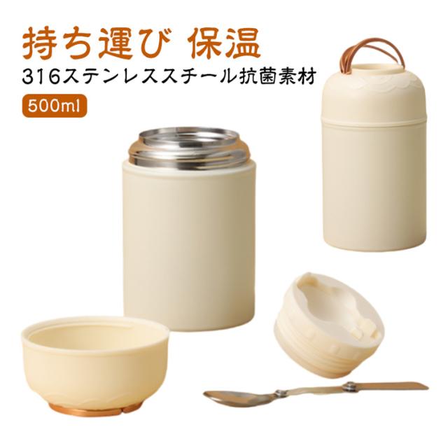 スプーン付き 550ml ステンレススープジャー 折りたたみスプーン付き あったか 750ml ランチ スープジャー 持ち運び 保温 お手入れ簡単 お弁当 ステンレス 保温 軽量 コンパクト おしゃれ かわいい 本体丸洗い スープ