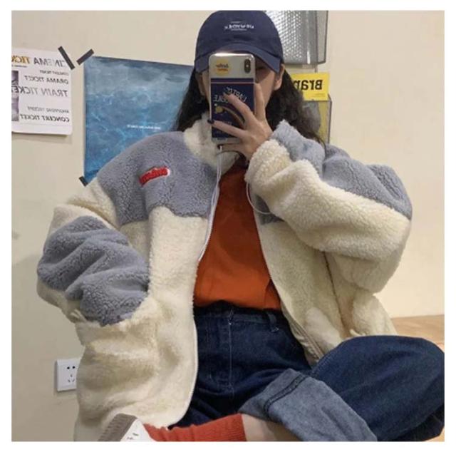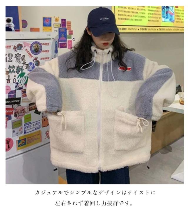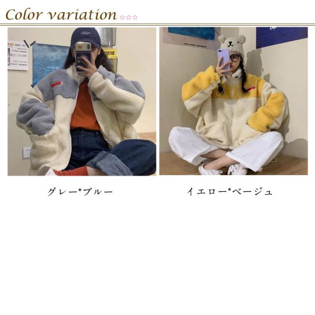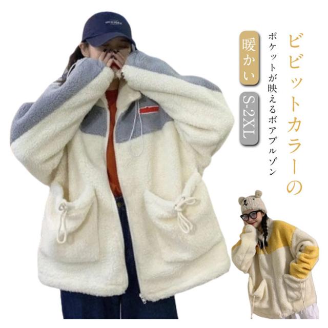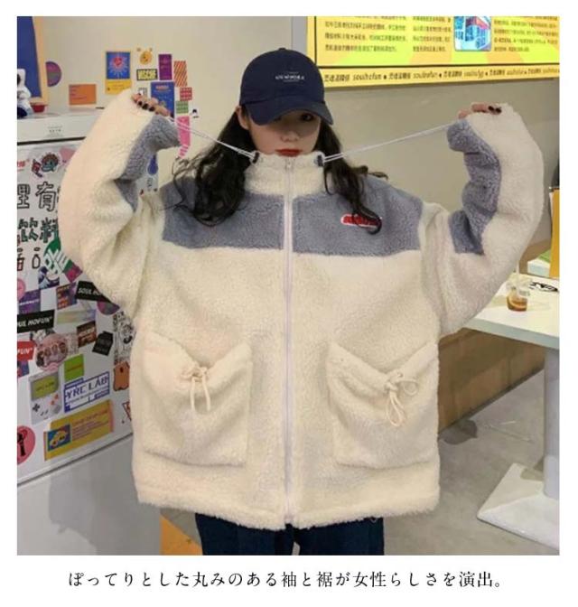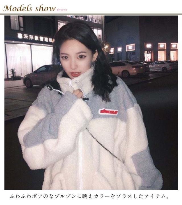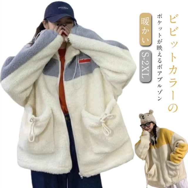 レディース ボアジャケット アウトドア バイカラー もこもこ ゆったり ブルゾン ボアブルゾン 無地 配色 アウター レディース 秋 冬