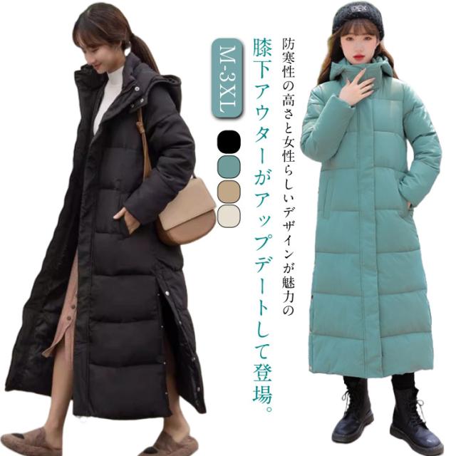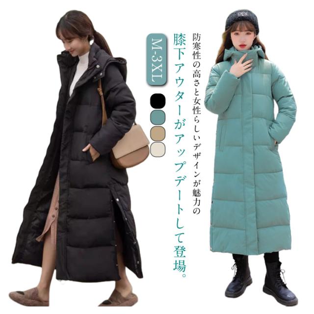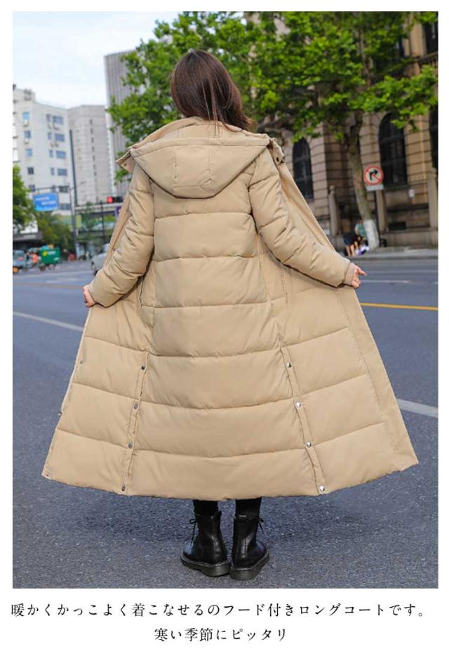 ベンチコート レディース ロングダウンコート ベンチコート レディース フード付き ロングコート 可愛い ダウンコート 冬 中綿コートコート 膝丈 アウター ロングコー 上着 ファッション ボリューム 厚手 バイク通勤