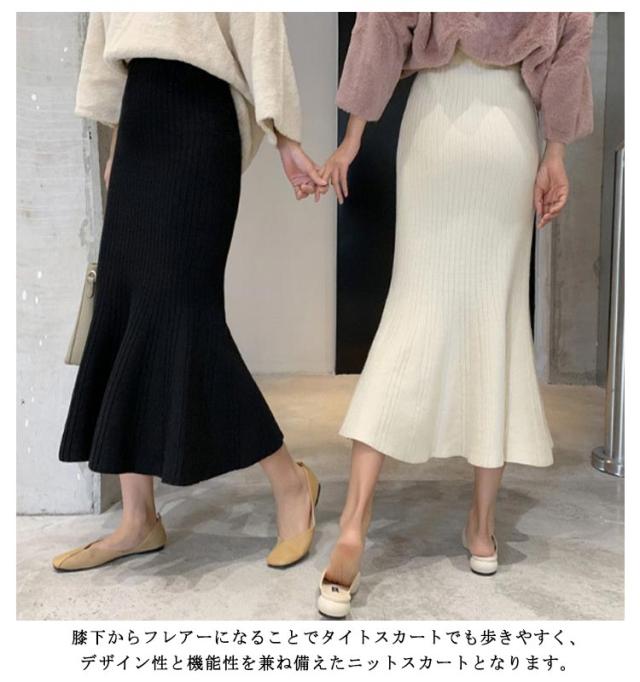 マーメイドスカート ミモレ丈 ウエストゴム マーメイドスカート タイトスカート レディース マーメイドシルエット 着痩せ リブニット ニット スカート ニットスカート 可愛い 美脚 通勤 通学 春 秋