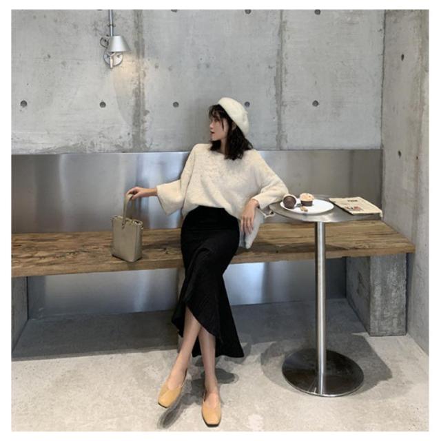 | 細めリブ素材とマーメイドラインが上品さを演出してくれます。 リブニットのマーメイドスカートになります。 膝ラインまではタイト目に、膝下からフレアなシルエットがおしゃれで可愛いスカートになります。 膝下からフレアーになることでタイトスカートでも歩きやすく、デザイン性と機能性を兼ね備えたニットスカートとなります。 ウエストはゴムなので、履き心地も◎綺麗な形を保つために、ポケットはついておりません。 秋冬にはもちろん、春先にもお使い頂けます。 | |