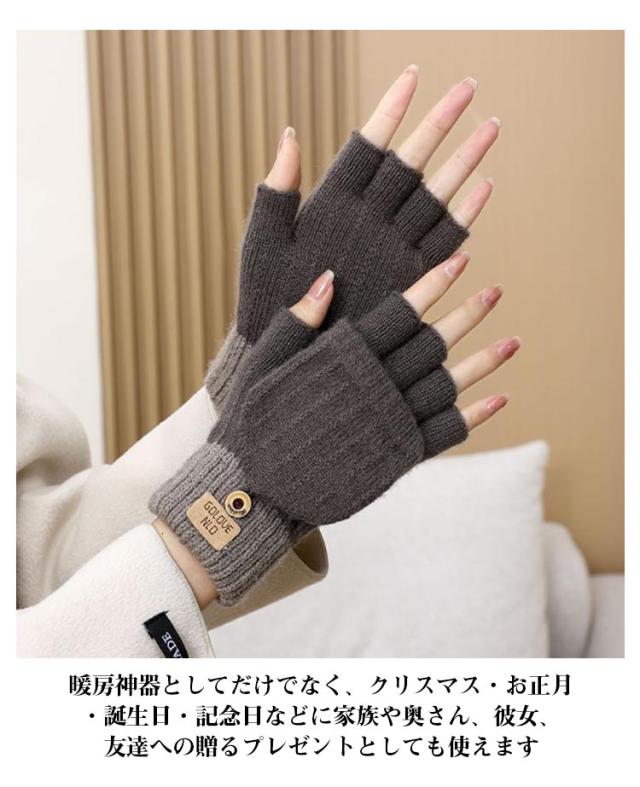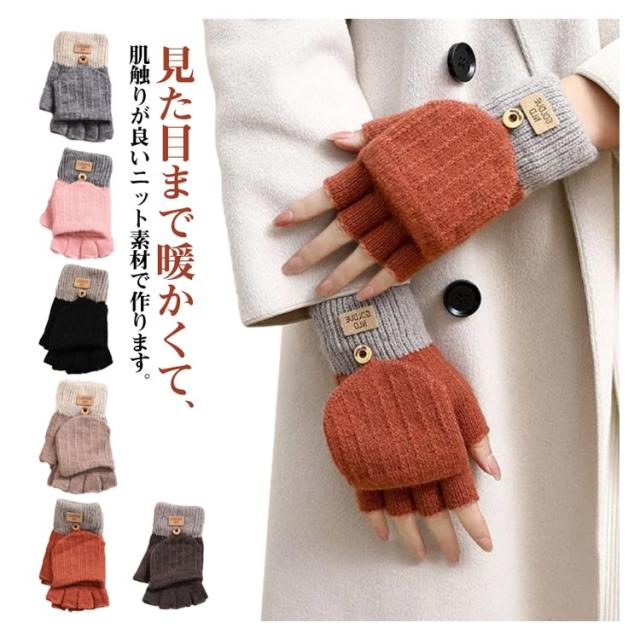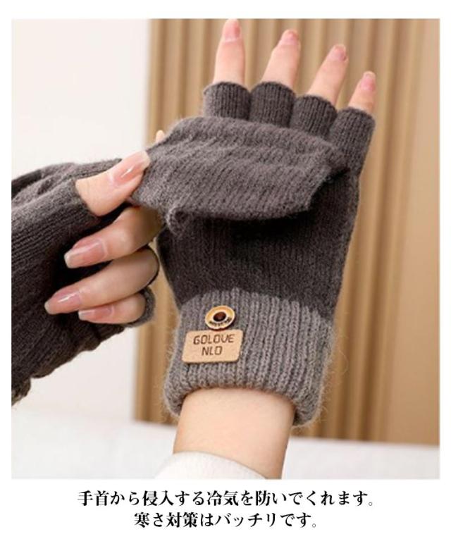 ミトンカバー付き スマホ対応 半指手袋 指なし 指なし 指切り 指なし 通勤 レディース手袋 レディースグローブ 指だし ニット手袋 レディース 通学 自転車 可愛い ふんわり 防寒 2WAY