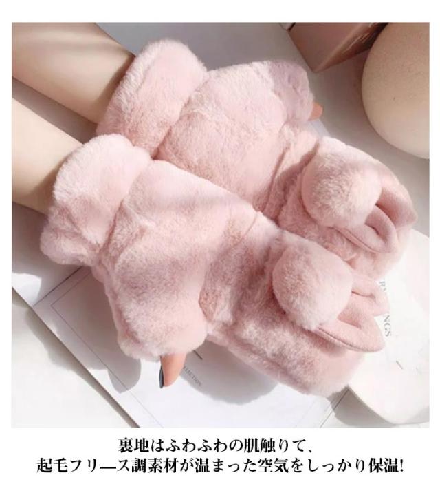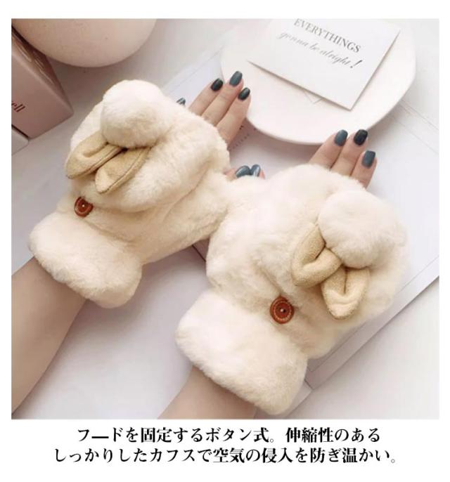 レディース 手袋 フード付き スマホ対応 うさ耳 2WAY 極暖 防寒手袋 ファー手袋 ミトン 厚手で上質な肌触り 柔らかい ミトン手袋 起毛 あったか もこもこ ふわふわ うさ耳 可愛い 伸縮性 学生 通勤 通学 自転車 プレゼント てぶくろ