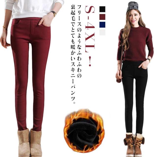 ボア ふんわり 冬 防寒 パンツ 裏起毛 スキニー 裏起毛パンツ 裏フリース ウエストゴム 裏地 暖か ロング 厚手 レギパン 暖かい ロング ストレッチ レギパン あったかボトムス 無地 レディース 体型カバー 秋 美脚 イージーパンツ