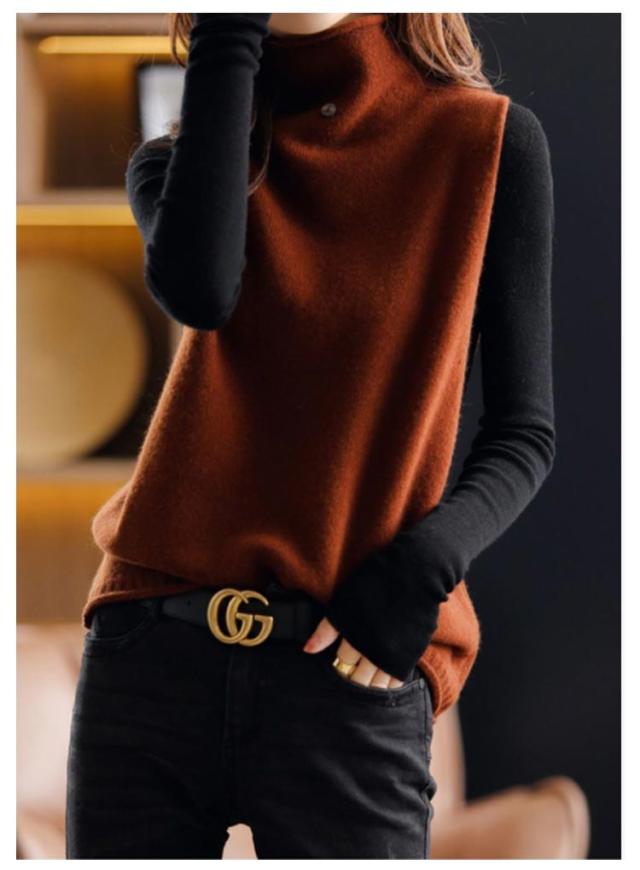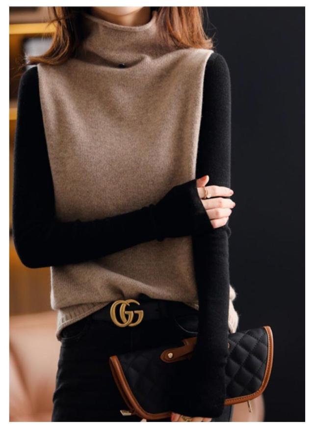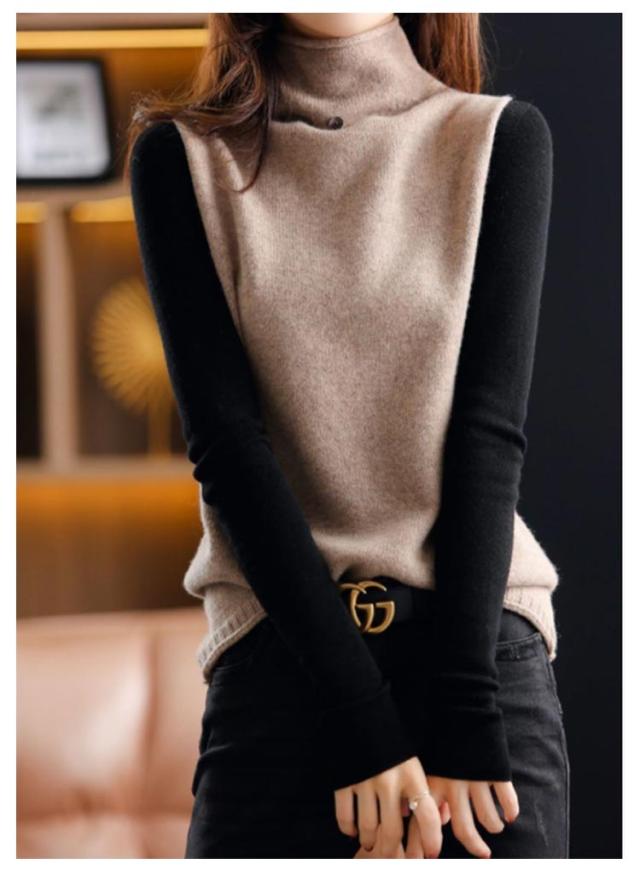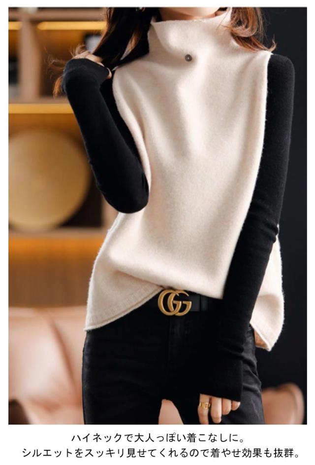 着痩せ 韓国風 ベスト 通勤 秋冬 無地 ショット丈 レディース 上品 ニットベスト ハイネック 体型カバー ニットベスト ニットセーター 送料無料 日常着 ママコーデ 着回し カジュアル 大きいサイズ 上品 お洒落